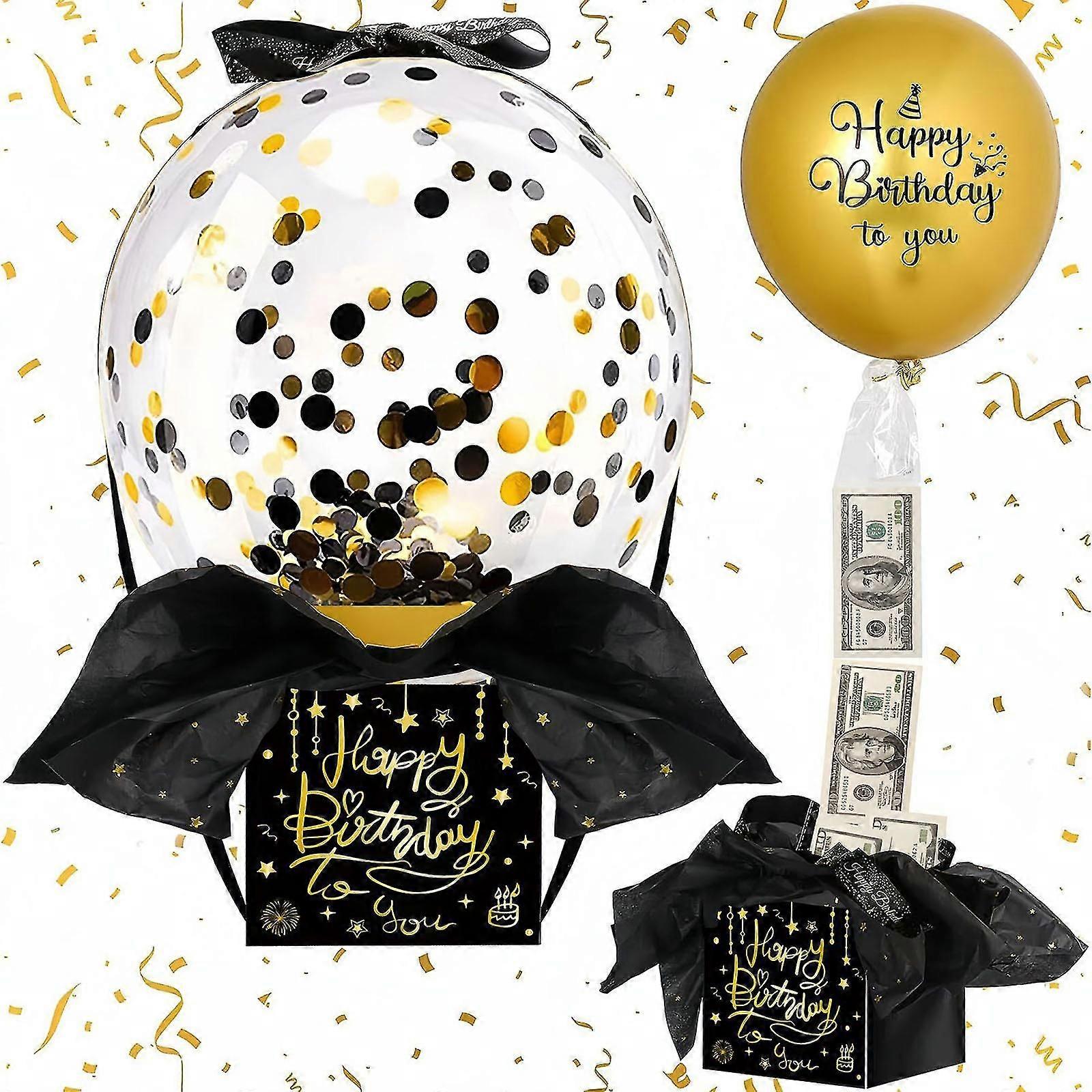 Birthday Money Pull Box for Party Surprise Gift Set with Cash Balloon & Golden Decorations