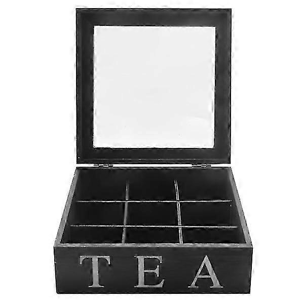 Wooden Tea Box with 9 Compartments for Tea Bags, Storage Box, Square Gift Box, Transparent Lid, Jewe -ES Black Cs fast