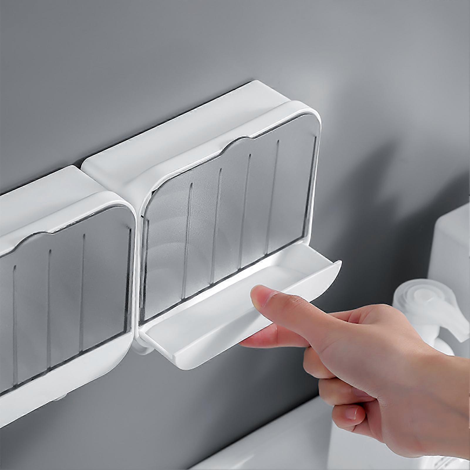 Soap Box Multifunctional Waterproof with Lid Wall-mounted Punch-free Soap Draining Rack for Bathroom