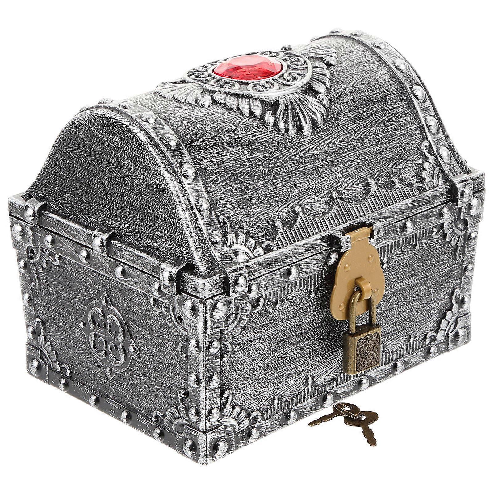 The pirate treasure box is made of plastic material, which is and safe for a long time use. A perfect storage box. Perfect for storing jewelry, and other small items. Decorative and practical, adds character to any room. Great for themed parties and events. It is a perfect present for friends for birthday, Christmas. Features - Color: Silver -Material:Plastic - Size: 16.00X14.00X12.50cm/6.29X5.50X4.91in -This is a great treasure box for friends to play with. You can send this box to your friends. -Made of good material for and practical use. It can last for a long time of use. -Perfect for store treasures or small items, the simulated treasure chest is fun to play. -This prop encourages creative, imaginative play. You can use it with confidence. -The treasure chest is retro style, unique, and practical. It is very decorative. Package list: 1 x holder box
