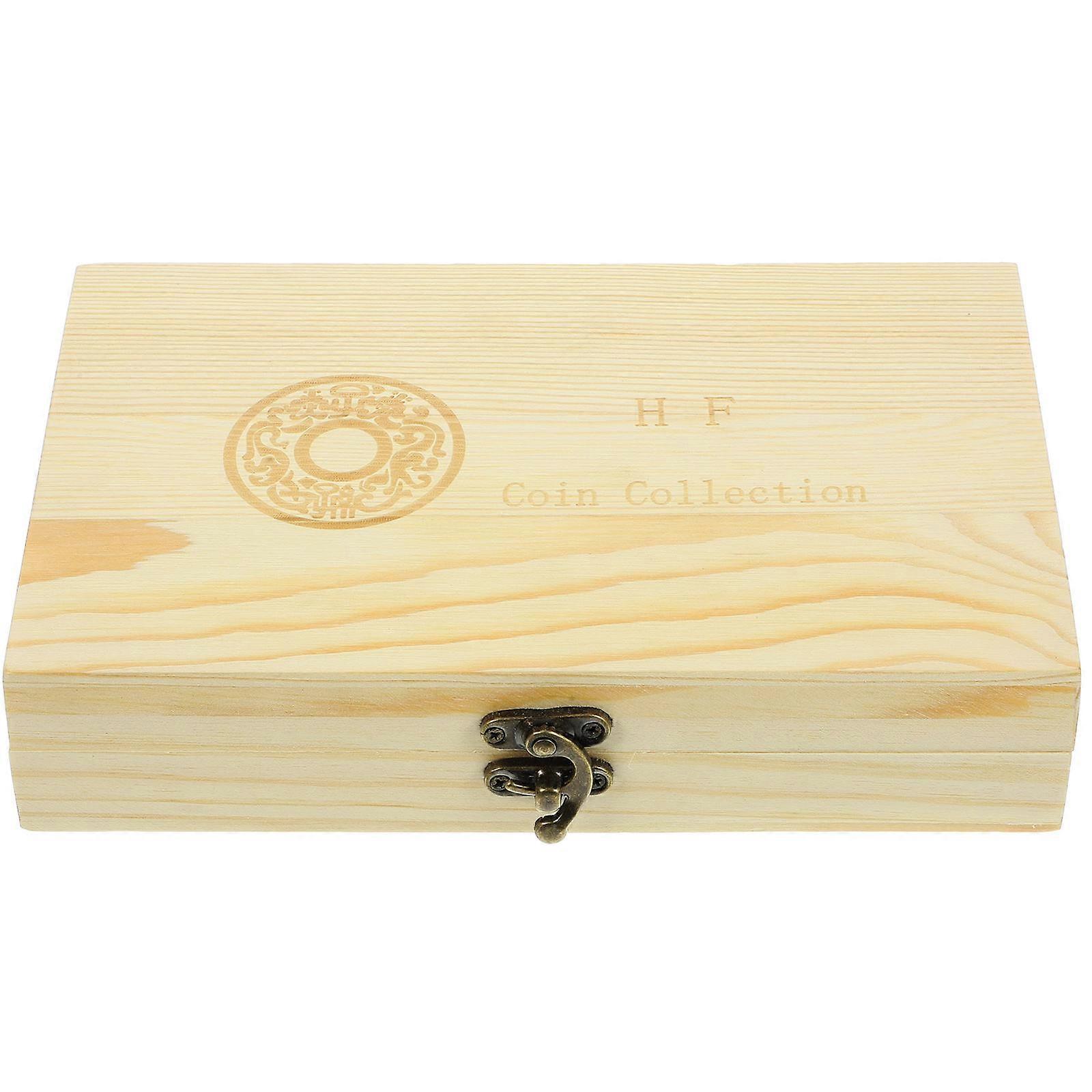 Hard Coin Storage Wooden Coin Box for Collection with Portable Holder