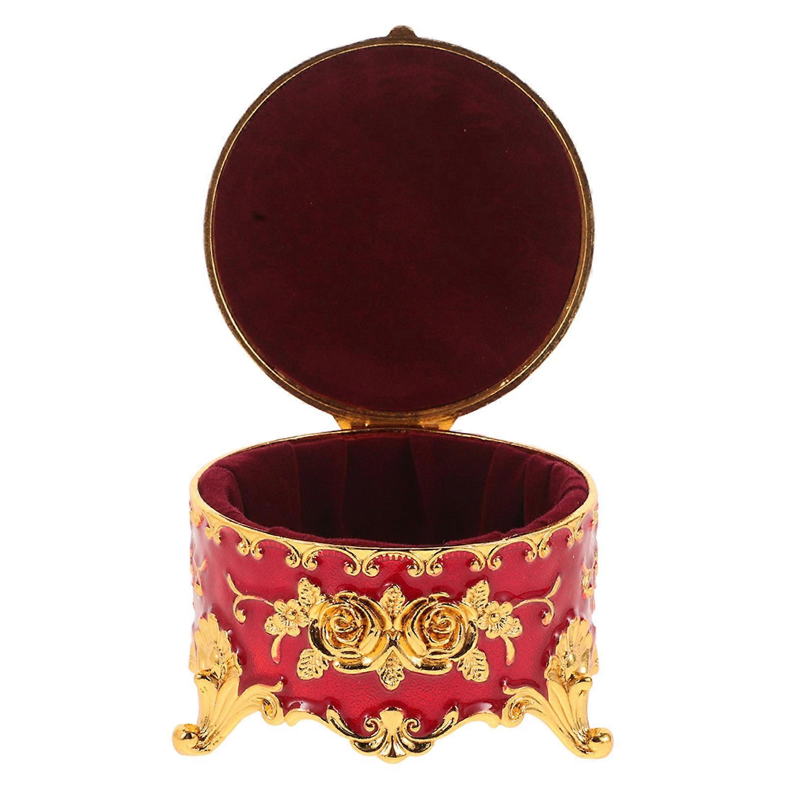 Roses Jewelry Box European Style Jewelry Storage Case Gift Giving Flannelette Red 8x8x5 Cm Decoration 1Pcs