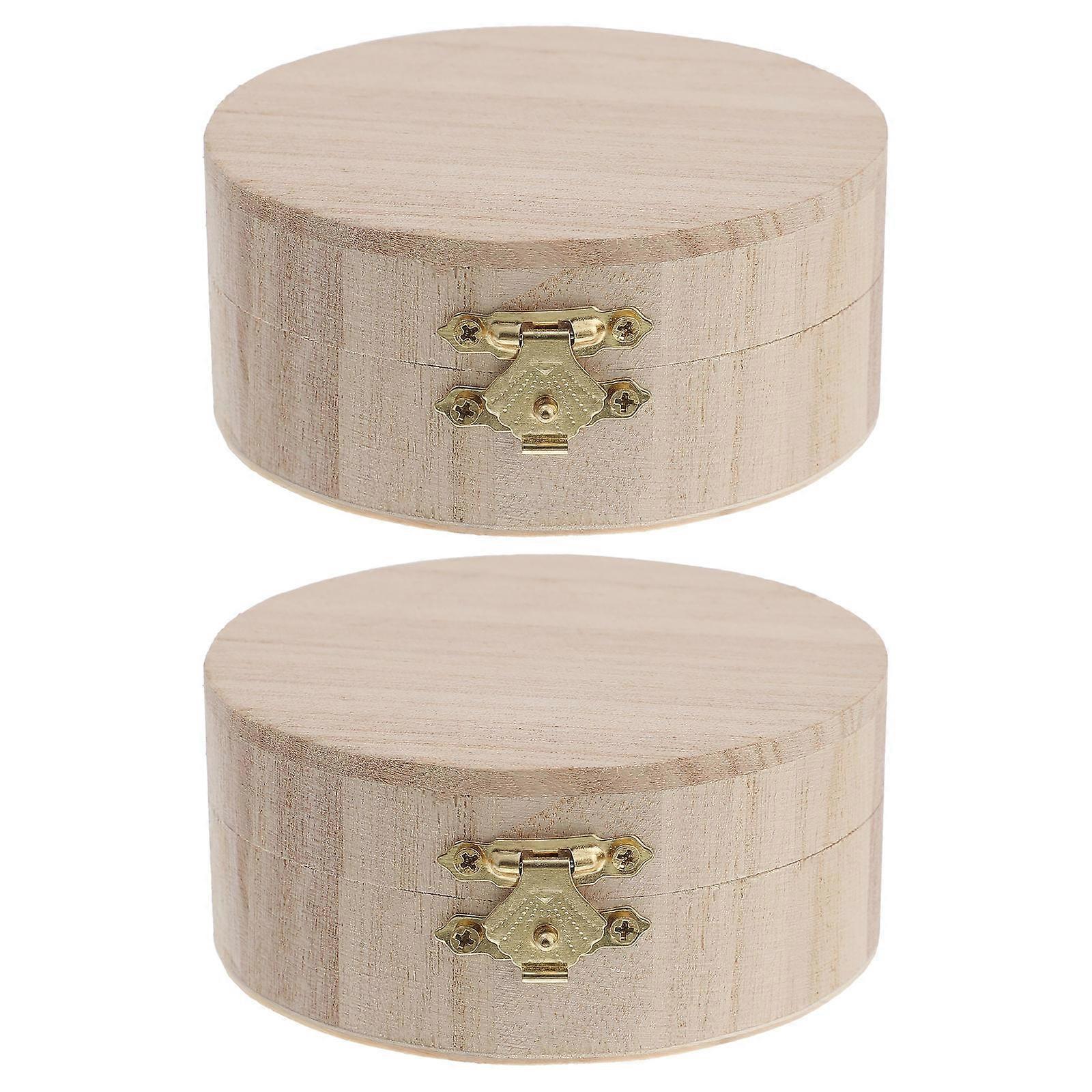 Simple Jewelry Box Diy Handmade Wooden Organizer Round Style 10.00X10.00X4.30CM 2Pcs