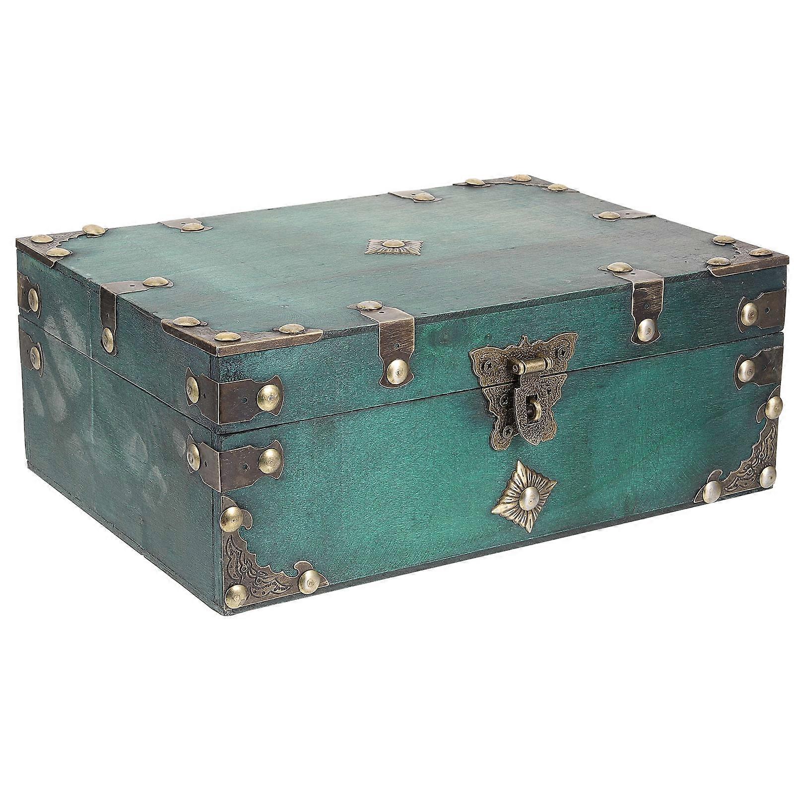 Wooden Jewelry Box with Lock for Storage Green Smooth to Touch Elegant Vintage Style 6.5 x 4.5 x 3 Inches