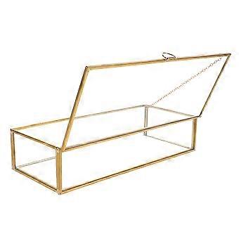 Retro Glass Jewelry Box Lidded Rectangle Keepsake Organizer for Rings & Bracelets Clear Storage Display Case for Dresser or .6x9x5.5cm