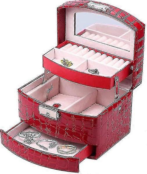Travel Jewelry Box with 3 Drawers, Mirror - PU Leather