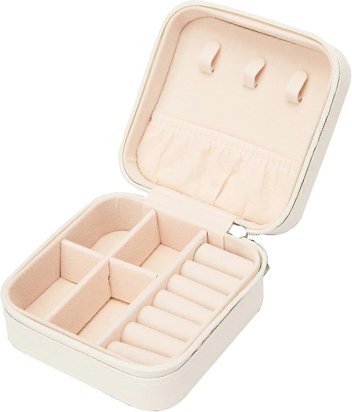 PU Leather Small Jewelry Box, Travel Portable Jewelry Case(White)