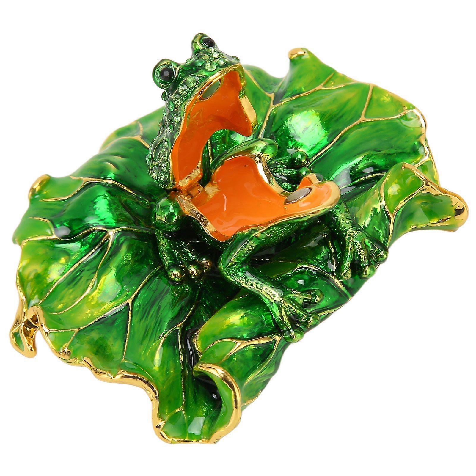 Lotus Leaf Frog Jewelry Box Hand Painted Innovative Metal Jewelry Organizer with Rhinestones for Ring Earring Jewelry