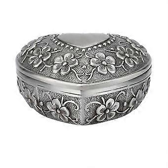 Vintage Jewelry Box Metal Heart Shape Carved Flower Antique Necklace Earring Storage Organizer