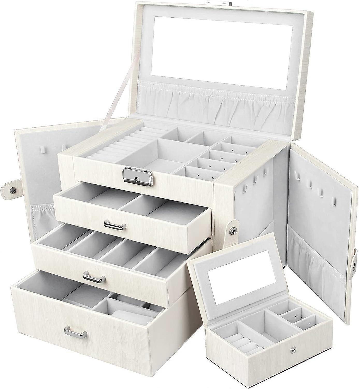 Lockable Jewellery Box with Mirror 3 Drawers and Removable Mini Box Seelux Series Jewellery Box for Necklaces, Watches, Rings