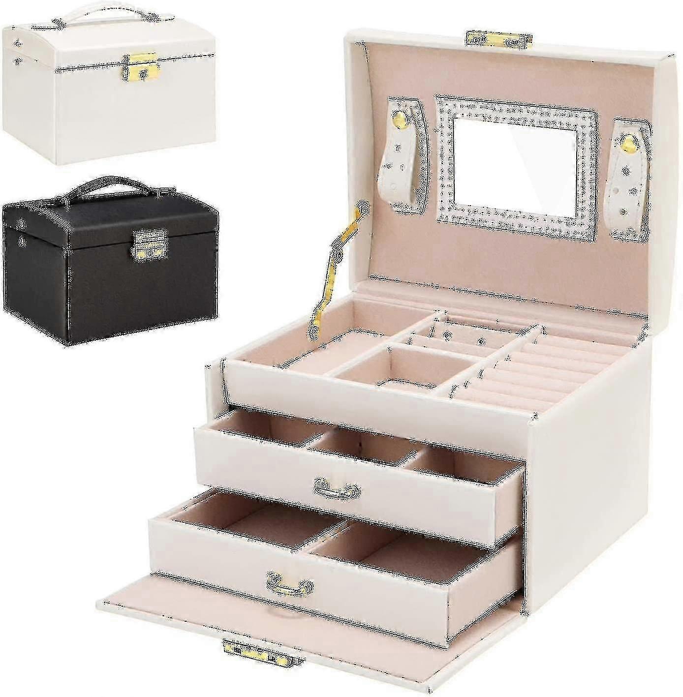 Jewellery Box With 2 Drawers Three Layers Pu Leather Jewelry Storage Box -t
