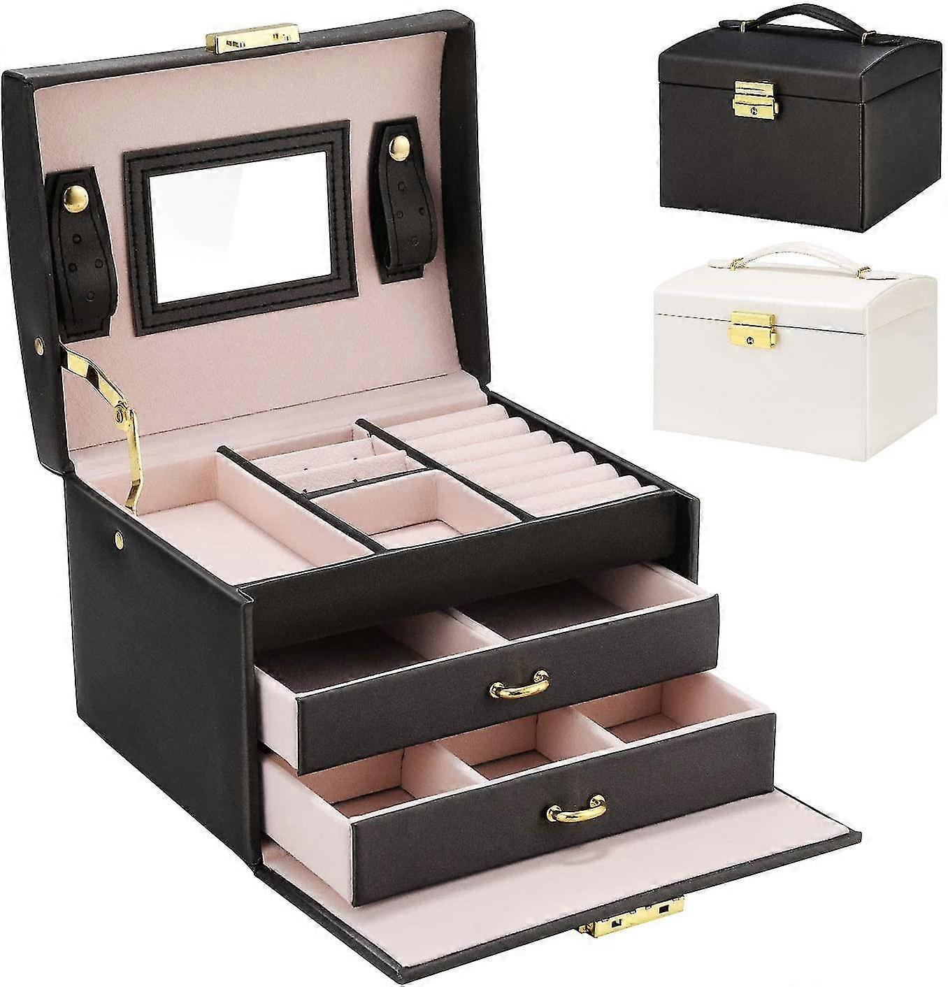 Jewellery Box With 2 Drawers Three Layersleather Jewelry Storage Box