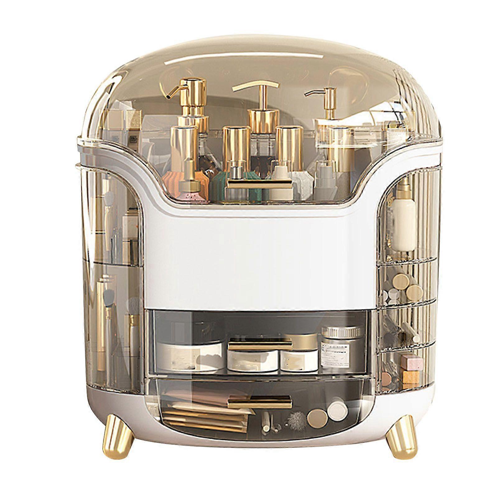 Cosmetic Box Large Capacity Compartment Storage Rotatable Waterproof Transparent Vertical Makeup Organizer White