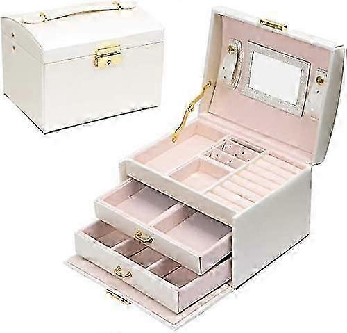 Jewelry and Cosmetic Makeup Box, 3-Layer Faux Leather Beauty Organizer with 2 Drawers, Mirror and Lock, Suitable for Storing Various Accesso