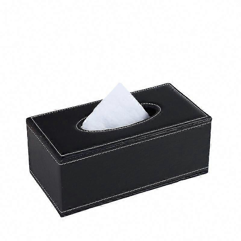 Leather Tissue Box with Lid - Black Rectangular Napkin Holder for Home & Office