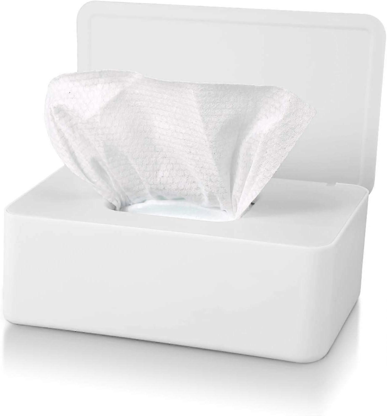 Tissue Box With Lid, Waterproof Dustproof Wet Wipes Box, Tissue Dispenser For Car Home Office (white)