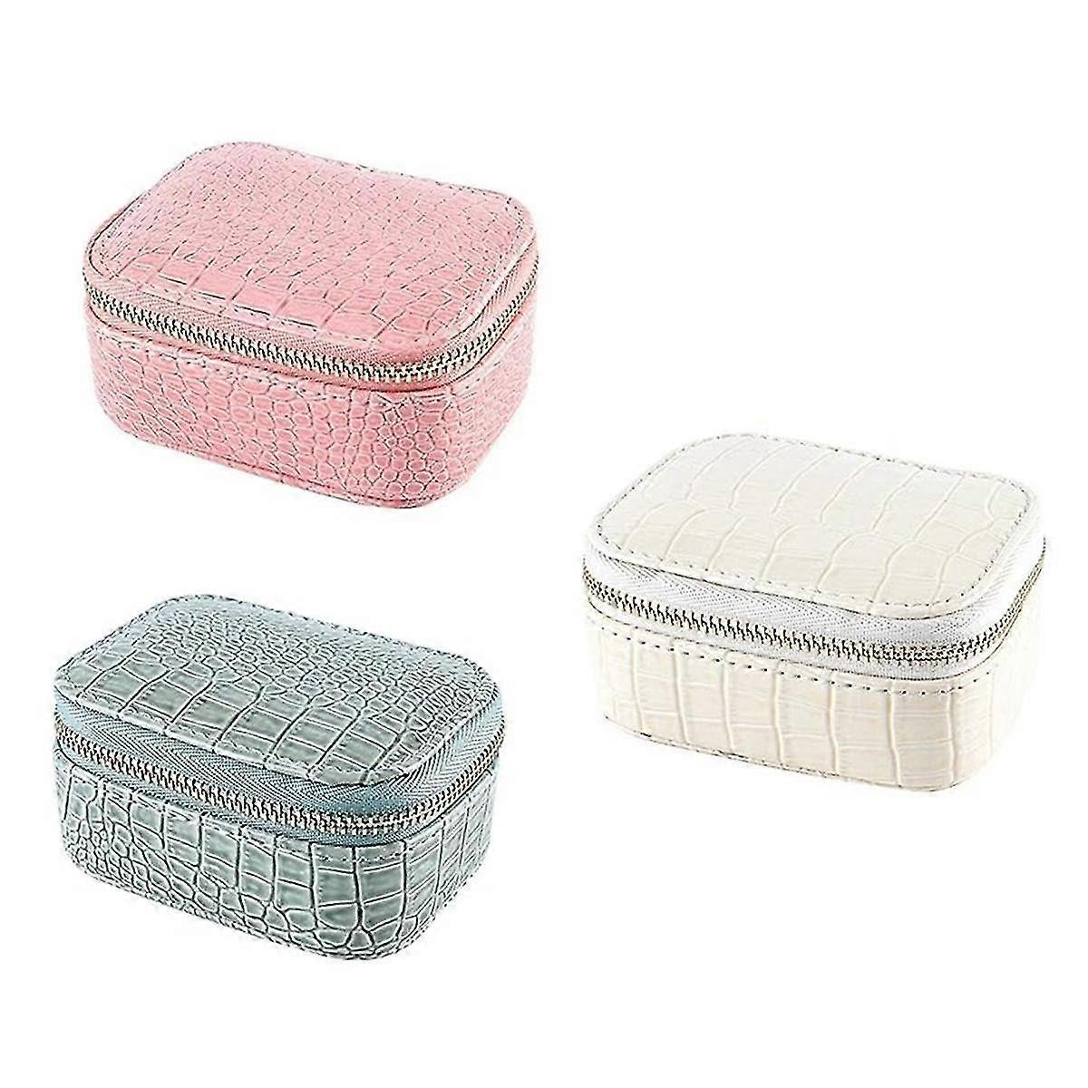 Portable Organizers - Designed to provide protective storage for your jewelry pieces, this modern small jewelry box will keep your accessories safe and organized and during travelCompact and Light - Made of quality PU leather and velvet inside, this jewelry box features a zipper closure and an elastic pouch bag, and can easily fit in your handbag, luggage, suitcase and pocketsMultiple Functions - This small size travel jewelry case measures 9.5x7x5cm and is suitable for your bracelet, earrings, rings, necklaces, and small watches.Fashionable and Simple - With its unique design and vivid color, this jewelry box organizer will maintain your stylish character even when you are attending big events or travelingGift with Charm - This aesthetic jewelry holder organizer is a cute girls and women of all ages in many occasions including wedding, Christmas, Mother's day, 's day, New Year, ThanksgivingColour:White & Blue & PinkMaterial:PU leatherSize:9.5x7x5cmPackage Contents:3 * Jewelry BoxOnly the above package content, other products are not included.Note: Light reflection and different displays may cause the color of the item in the picture a little different from the real thing. The measurement allowed error is +/- 1-3cm.