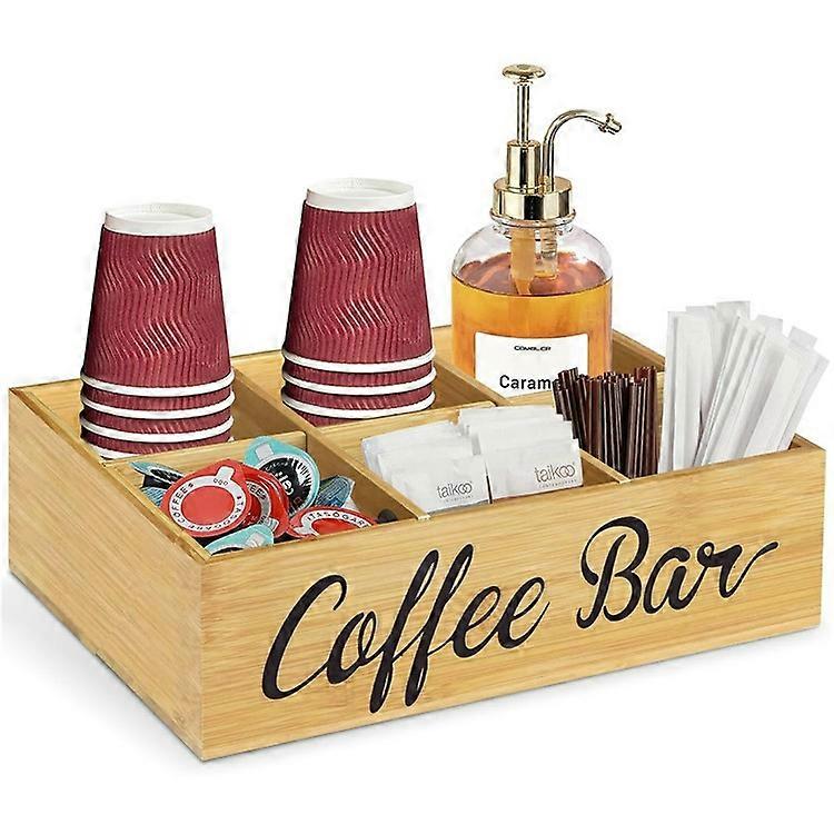 Wooden Coffee Station Organizer Box Tea Bag Dispenser Storage Basket for Home / Office / Hotel
