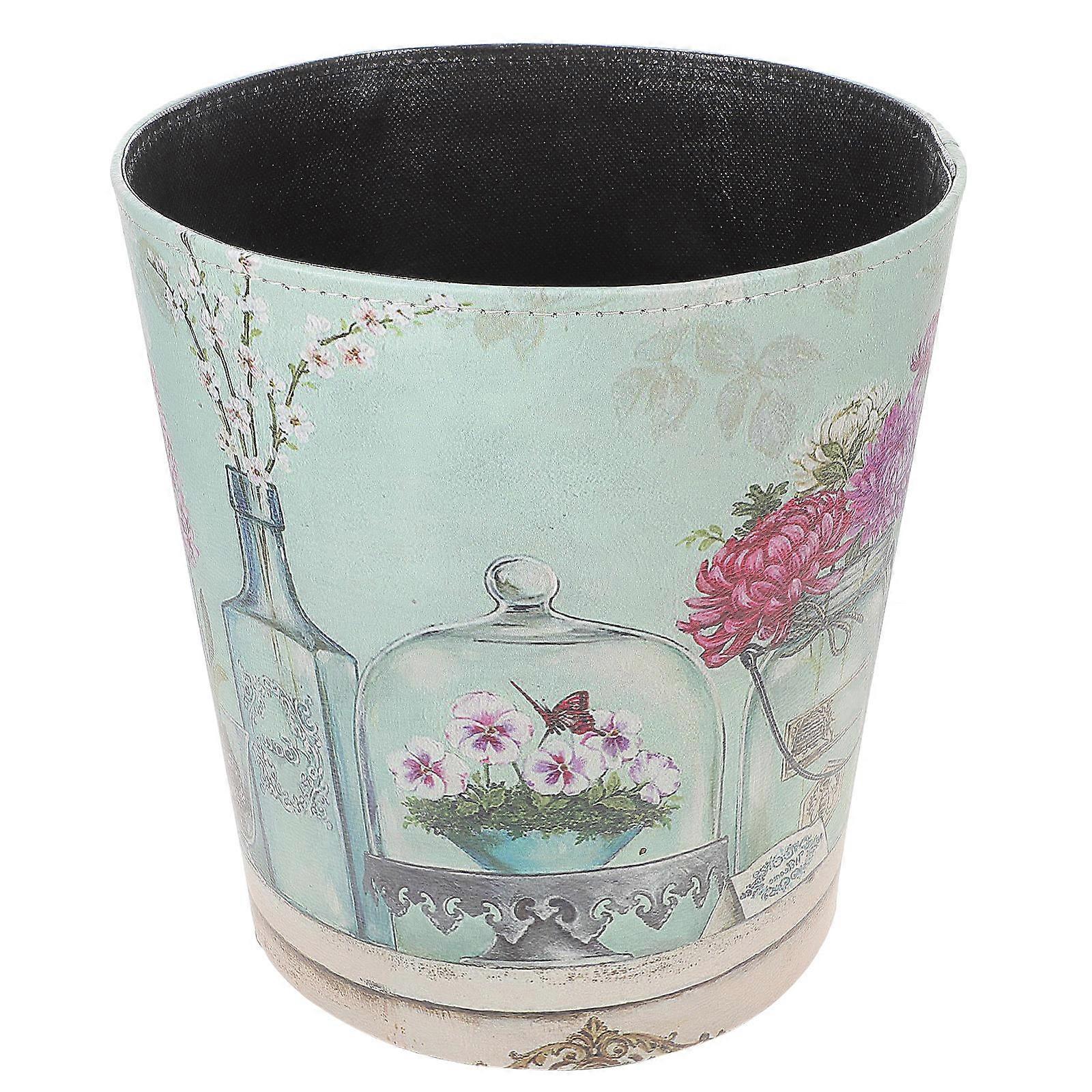 Vintage Patterned PU Waste Bin, Multi Functional Decorative Storage Bucket for Home, Office and Hotel – Creative Trash Can with Unique Floral Design