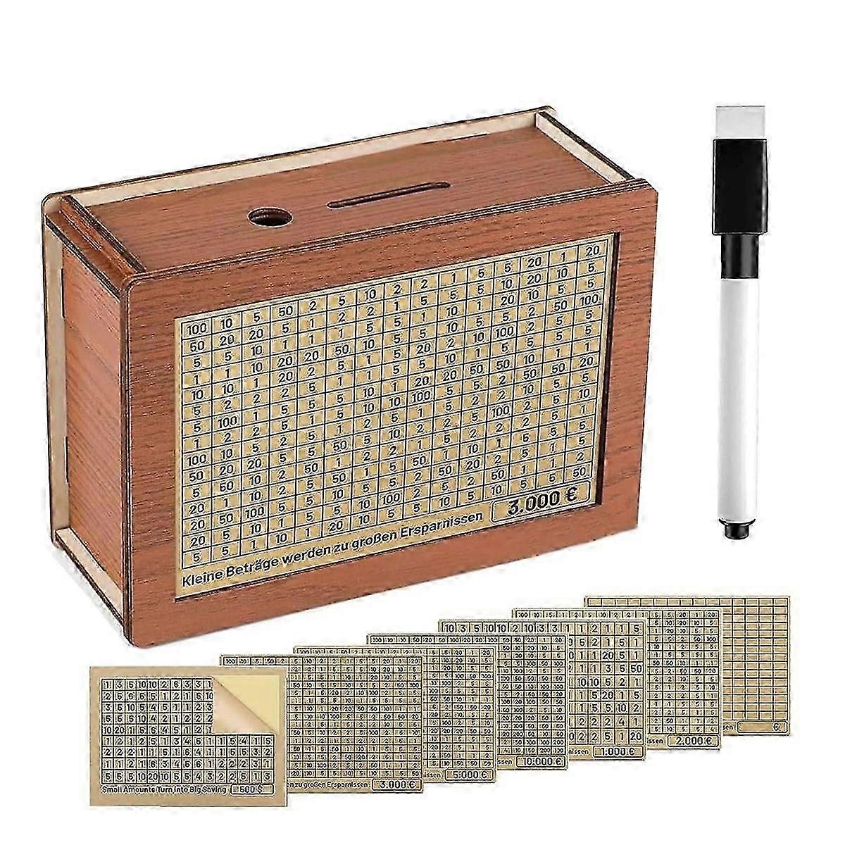 Wooden Money Box, Wooden Money Box with Counter for Ticking, Piggy Bank with Marker, Money Box, Wooden Piggy Bank Helps