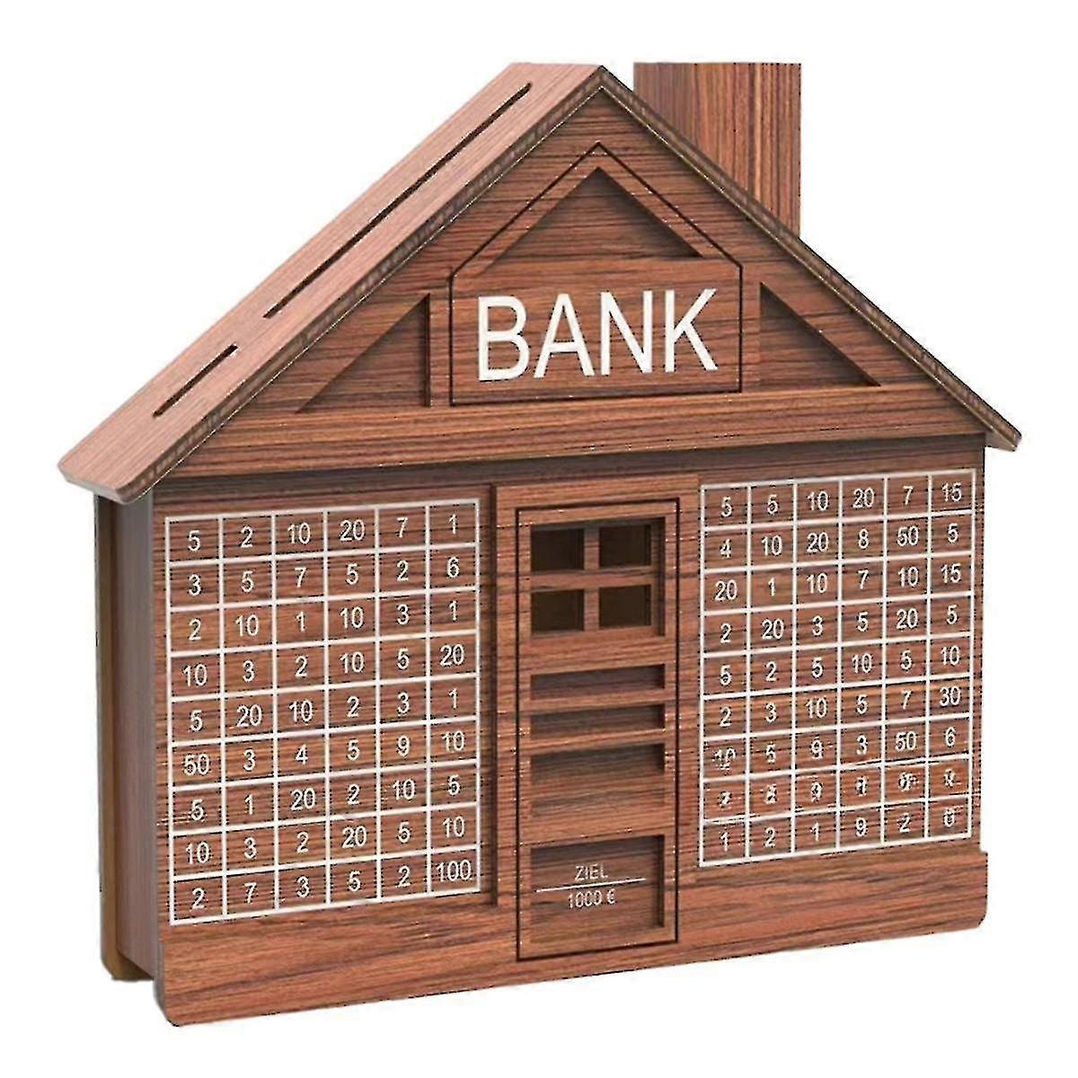 House Shape Wooden Money Box With Counter Wooden Crafts Money Saving Box Portable Coin Bank Brown Money 1000 G
