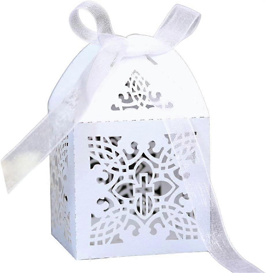 Baptism Gift Box, 50 Pieces Wedding Favor Boxes with Cross Pendants Baptism Gift Box Crucifix Candy Box Table Decoration for Communion Wedding Baptism