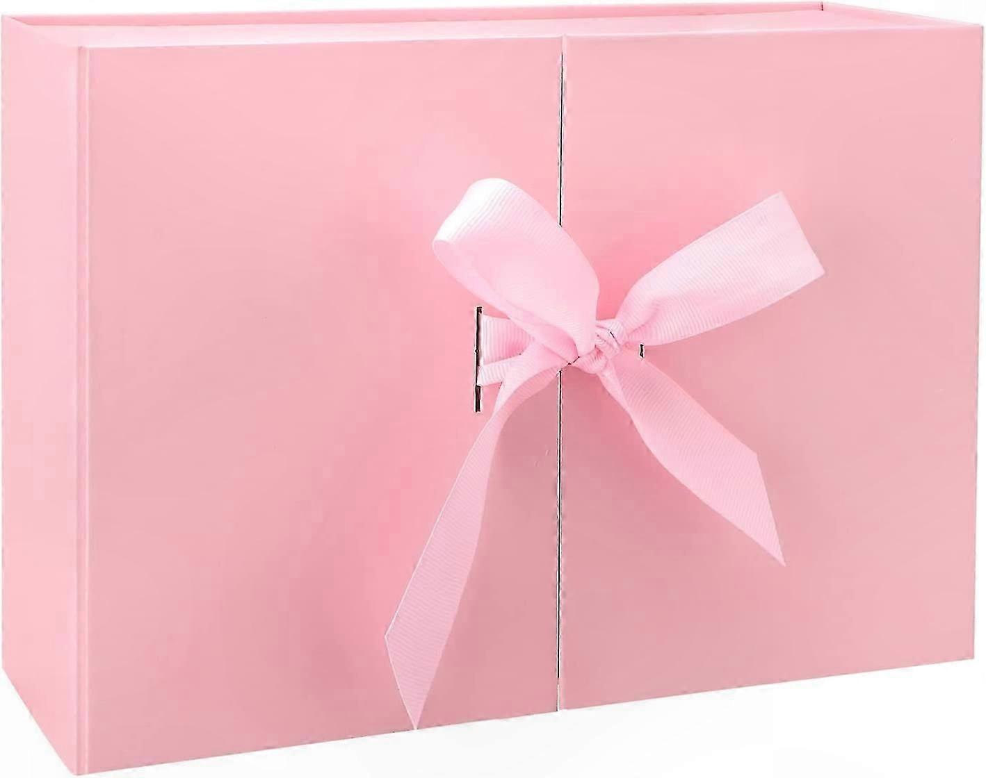 Elegant Gift Box with Ribbon, Foldable Cardboard Present Box with Lid, 26.5x19x8cm Pink
