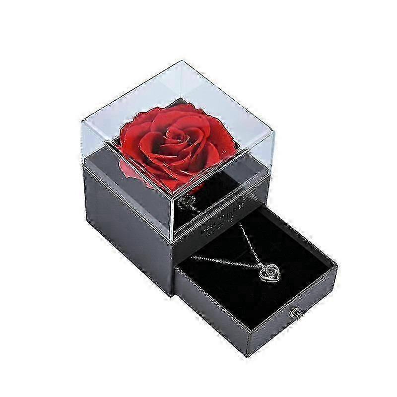 Forever Rose Jewelry Gift Box, Enchanted Real Rose with Ruby Rose Brooch, Eternal Handmade Rose Flower