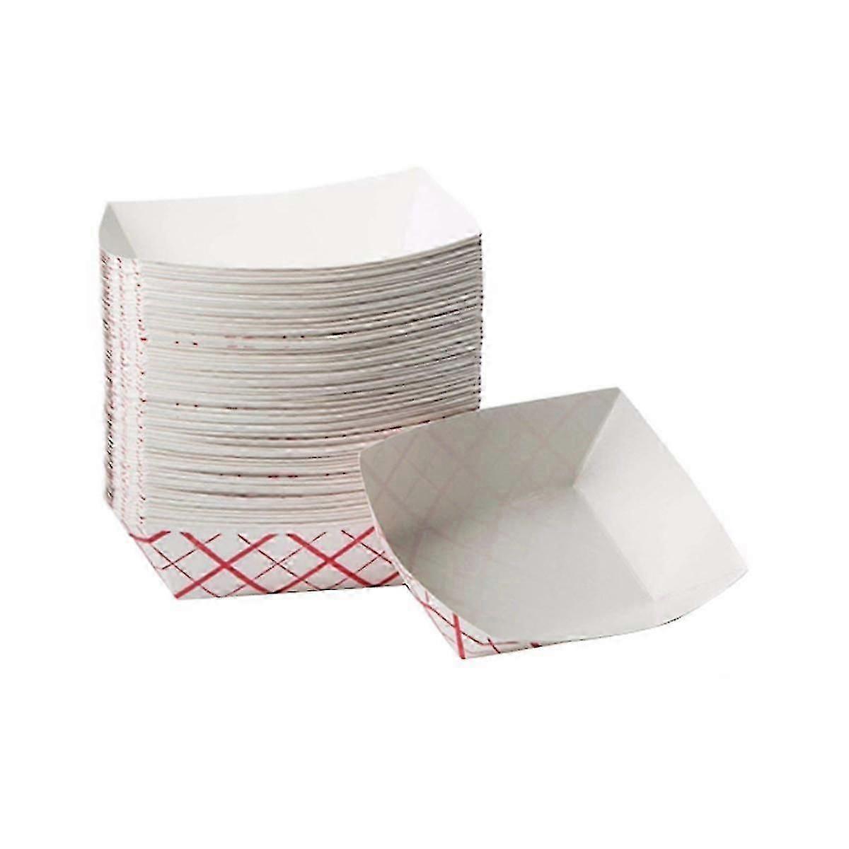 100pc Paper Food Trays Disposable - Red & White Checkered Leak Proof Paper Food Boats - Paper Trays Hr
