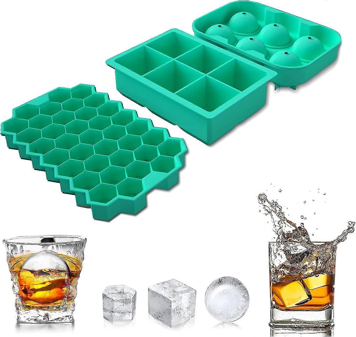 Ice Cube Trays, 3 Pack Bpa Free Silica Ice Block Trays With Lid, Ball, Cube And Hexagon Ice Shape, Flexible, Reusable, Ice Cube Mold For Whiske, Bever