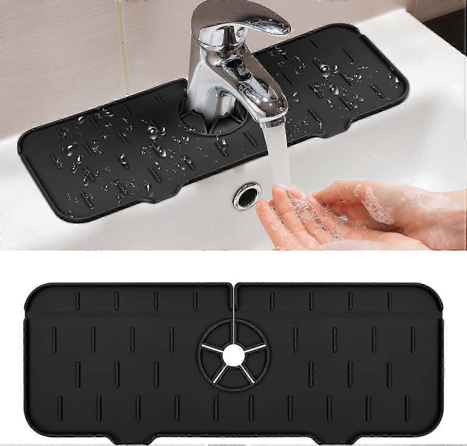 Faucet Handle Drip Tray, Silicone Sink Faucet Mat, Drying Mat, Multifunctional Drying Mat for Kitchen, Bathroom, Restaurant (Black)