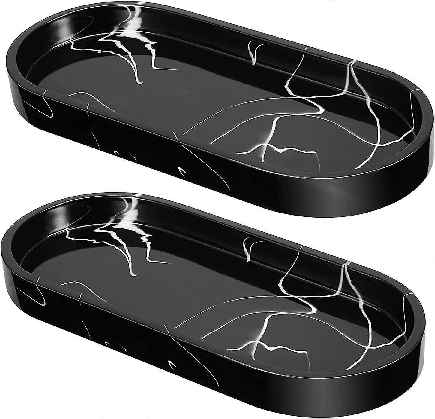 Bathroom Vanity Tray 2 Pack Resin Dresser Jewelry Ring Dish Tank Cosmetic Organizer Plate Holder for Perfume Candles Towel Soap Small Plant (2 Pack Ov