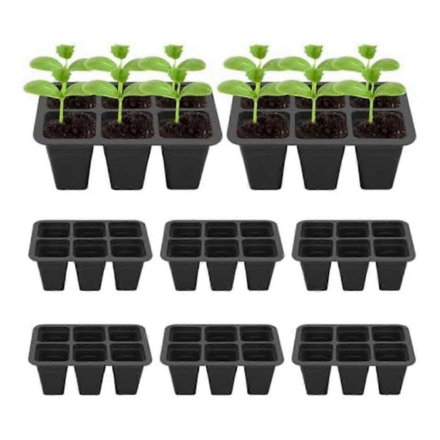 The plant starting trays are made from Silica gel material that is heat resistant up to 120°F, suitable for heating pads and grow lights, and strong enough to be reused multiple times. PERFECT SIZE AND CONVENIENT TOOLS - Seed starting trays provide plenty of room for your plants and act as a barrier for seedlings, preventing damage from wind, rain or cold weather. Suitable for planting various vegetables, fruits, flowers and other seeds. Adjustable Humidity and Airflow - Turn the ventilation knob to control interior humidity from 50%-100% for seedling growth. The clear lid of the seed starter kit allows light to pass through and keeps warmth and moisture in to ensure successful germination, especially suitable for seeds with high humidity and temperature requirements. Clear Cell Tray - Clear cells help remind you to water as needed, provide a better growing environment for seeds, and monitor root growth at a glance to ensure roots are strong enough for transplanting. In addition, the drainage holes of the seed germination tray can effectively prevent over-saturation of roots and improve seed viability. How to Plant - Plant a small garden with your children and experience the joy and sense of accomplishment of planting. First, fill the seedling tray with nutrient soil (fill 2/3 full of soil), and then put the seeds into the hole. The third step is to cover it with a layer of soil and then water it. The final step is to place the lid on top and adjust the knobs to control humidity and airflow as needed during the germination process.<br><br>Colour:Black Material:Silica gel<br><br>Package Contents: 8 * plant starting trays<br><br>Only the above package content, other products are not included. Note: Light reflection and different displays may cause the color of the item in the picture a little different from the real thing. The measurement allowed error is +/- 1-3cm.