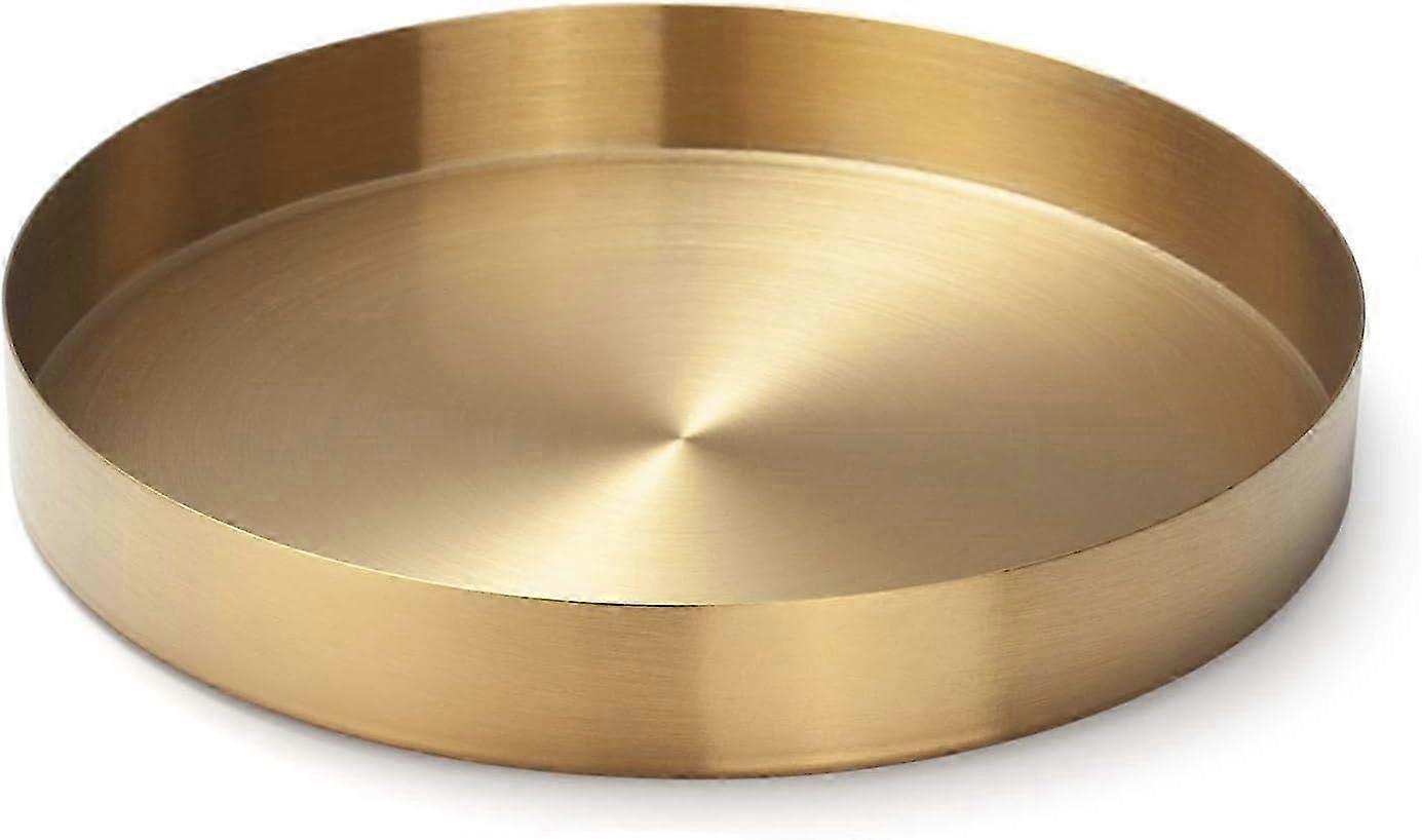 Gold Stainless Steel Round Serving Tray - Jewelry and Makeup Organizer Candle Plate (20cm)