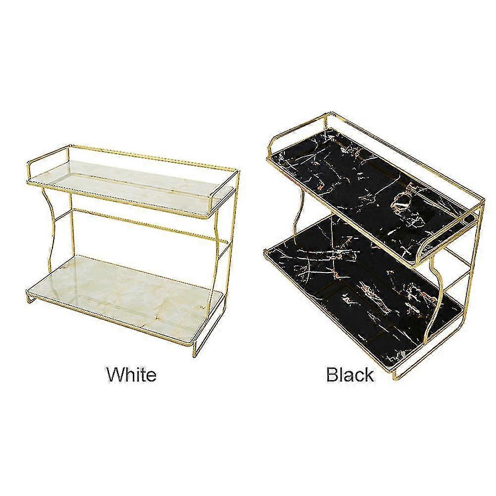 Modern Tray Bedroom Cosmetic Bathroom Countertop Makeup Organizer 2 Tire Marble Print Shelf Storage Rack Dresser Multifunctional
