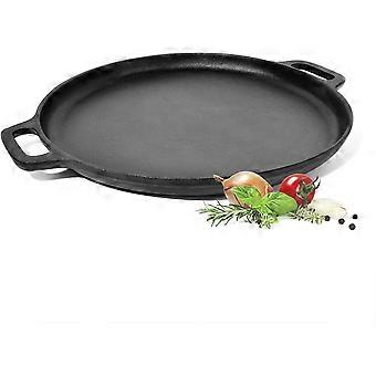 smooth baking tray 35 x 3 cm in cast iron | Grill Pan Suitable for BBQ and Stovetop | Round, pre-seasoned universal pan