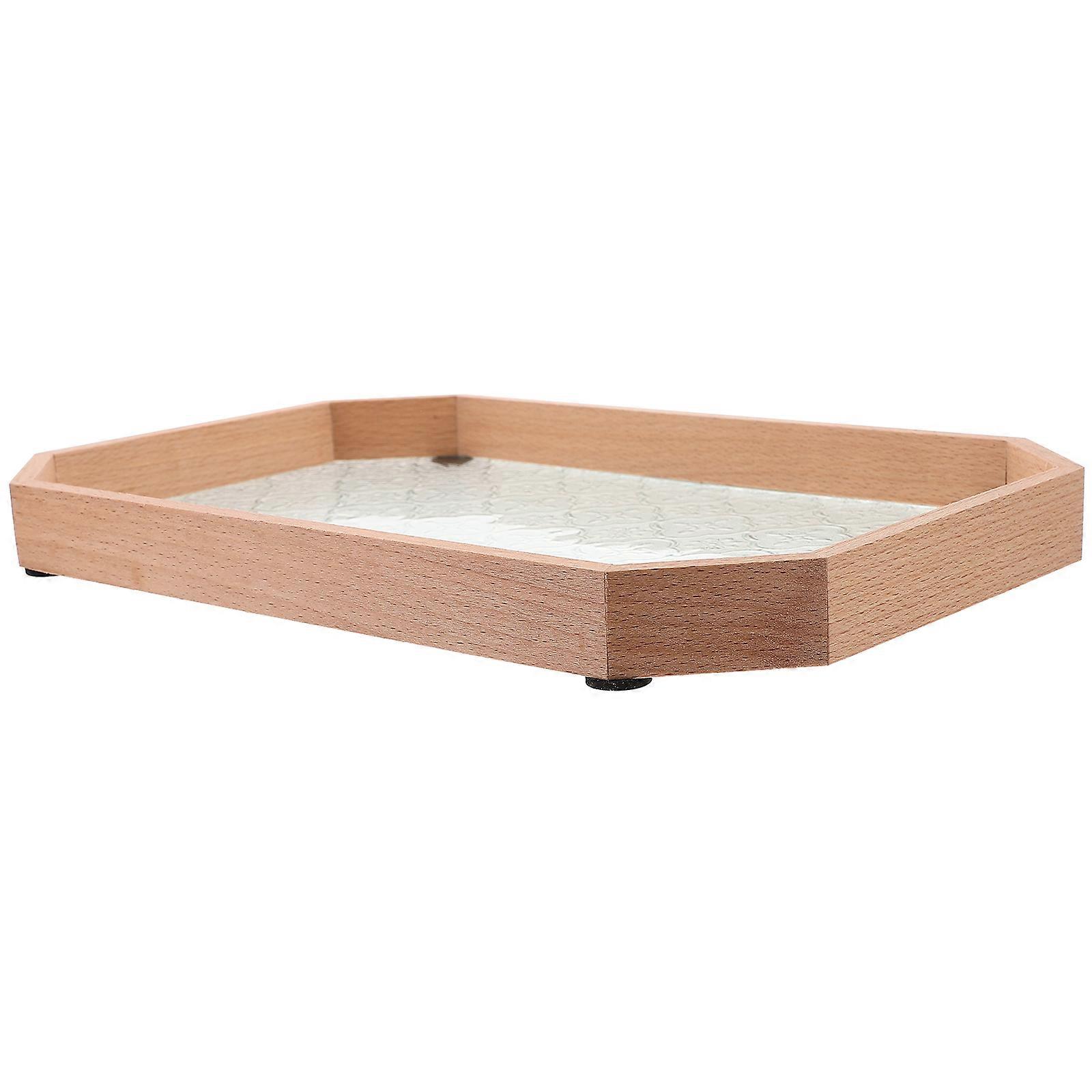 Elegant Glass Wood Tray For Restaurant Use Featuring A Beautiful Flower Design In Light Brown 1Pcs
