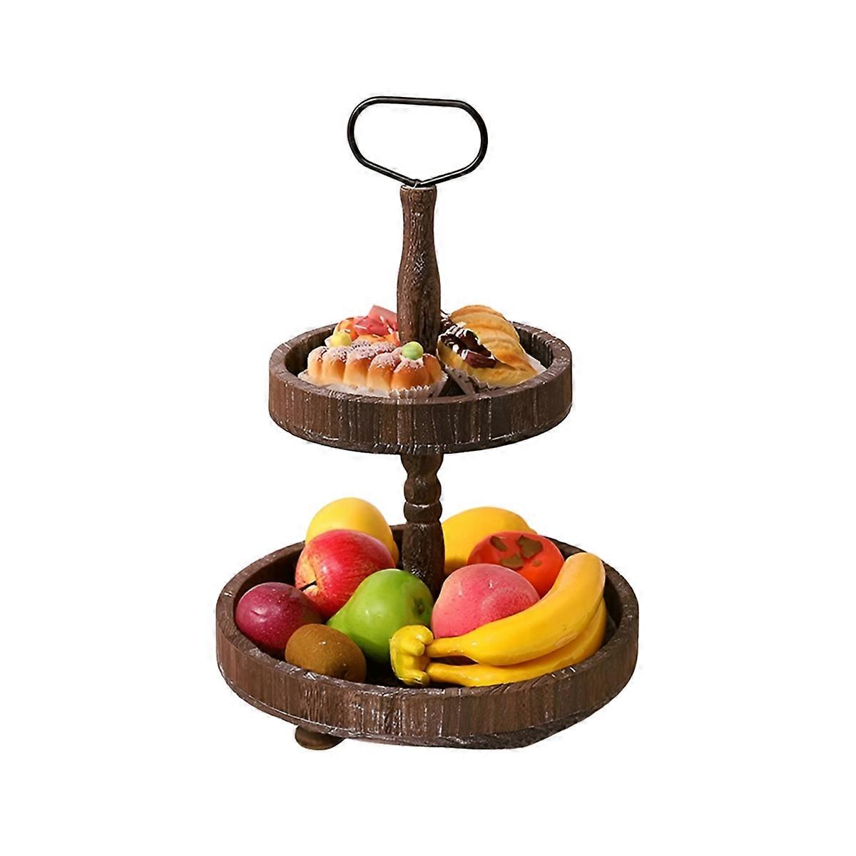Rustic Style Wooden Tiered Tray, Farmhouse Decorative Tray, Round Tray with Metal Handles,Washed Wh