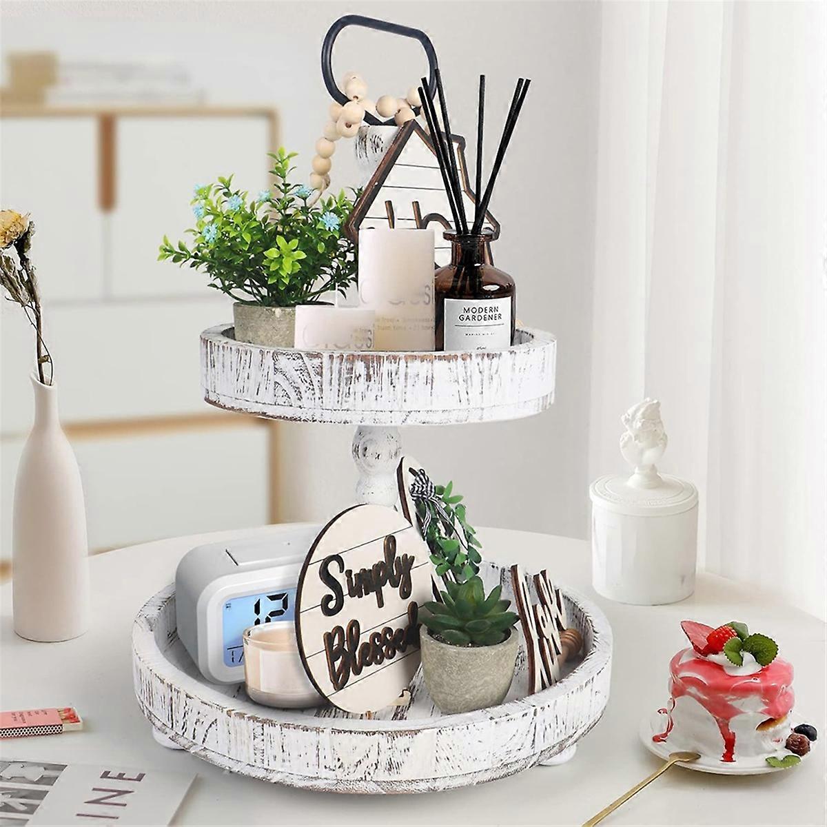 Rustic Style Wooden Tiered Tray, Farmhouse Decorative Tray, Round Tray with Metal Handles,Heavy Roa