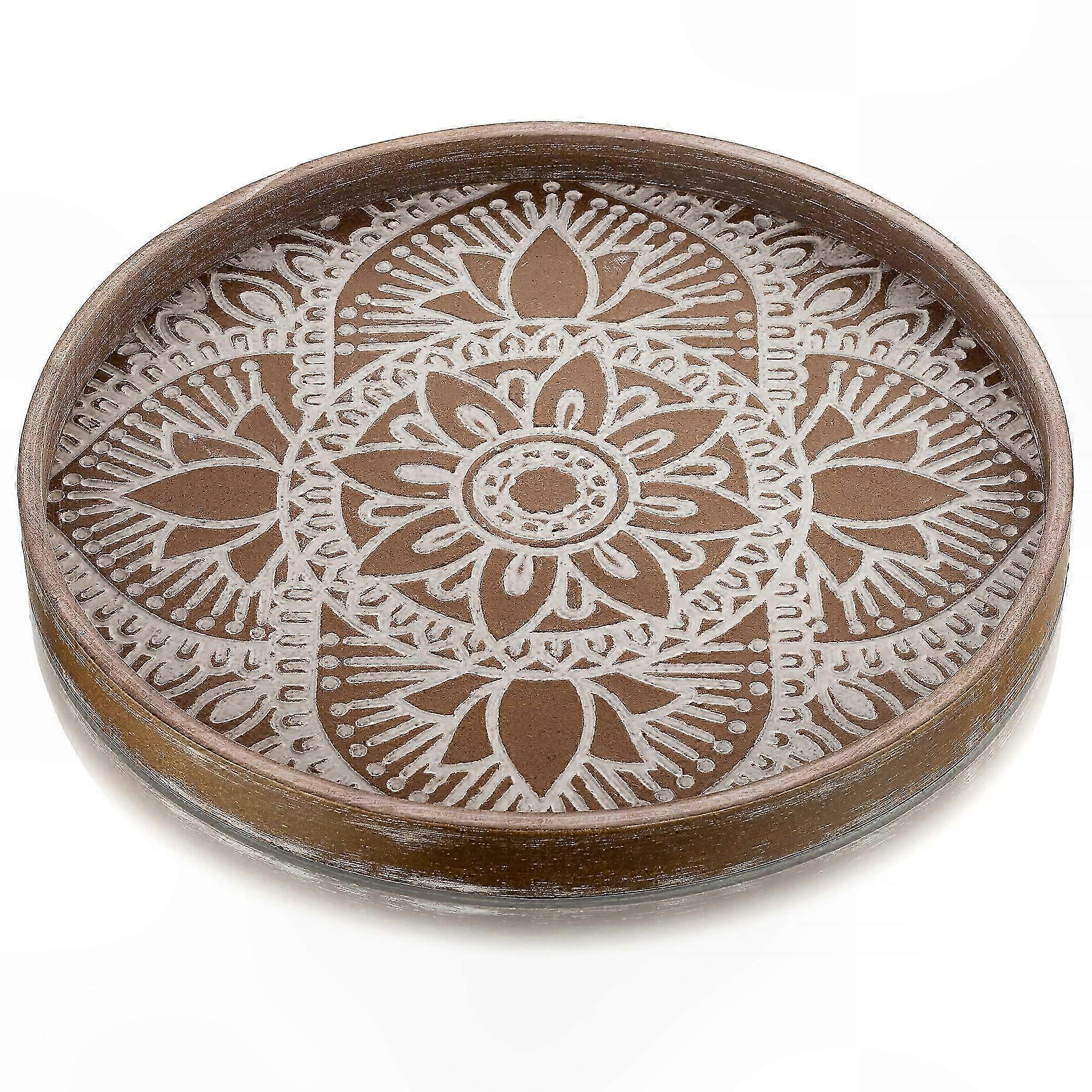 Rustic Round Wooden Tray, 30cm Decorative Serving Tray, Vintage Brown Candle Tray, Shabby Chic Design for Home Decor