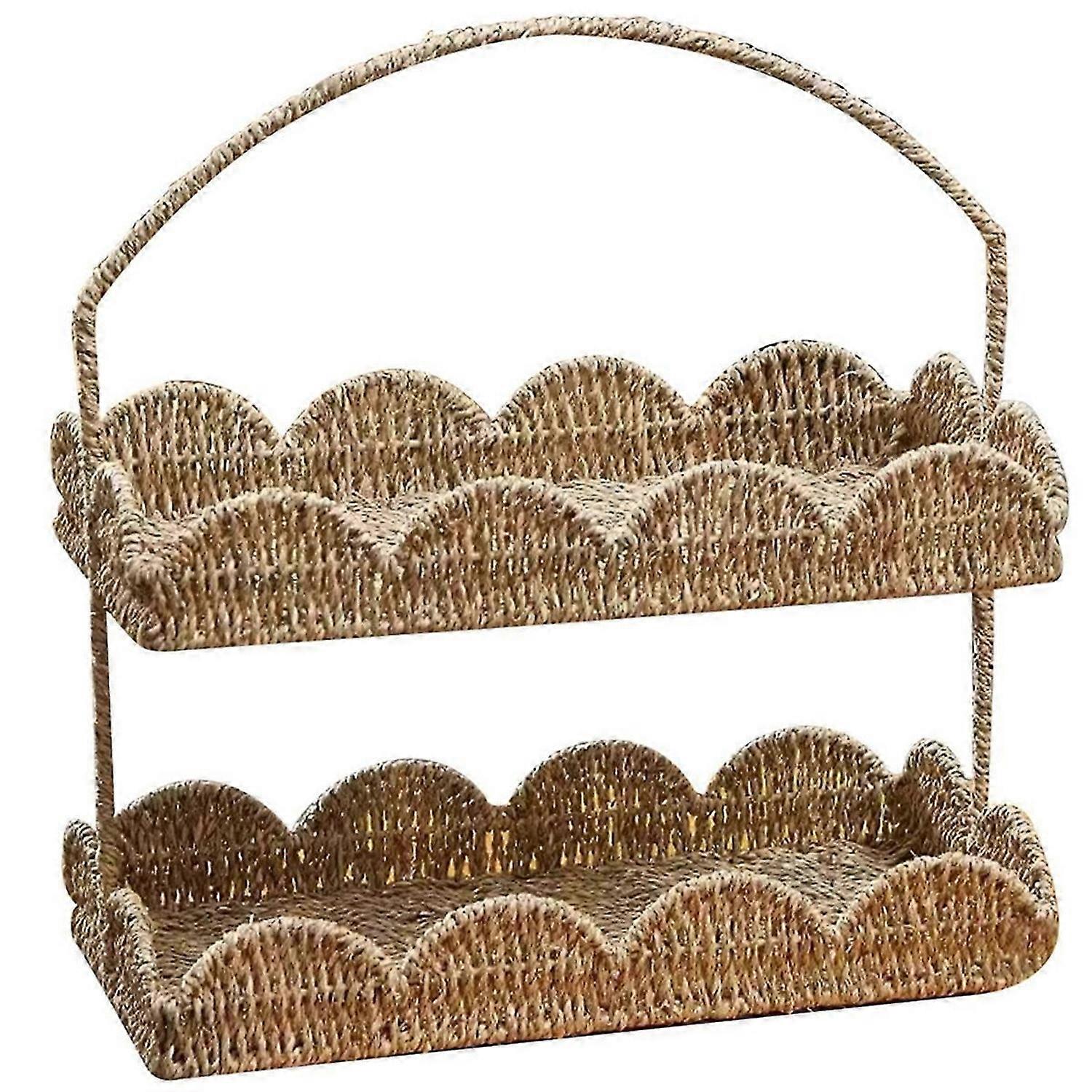 2 Layers Scalloped Basket Tray with Handle Rustic Decorative