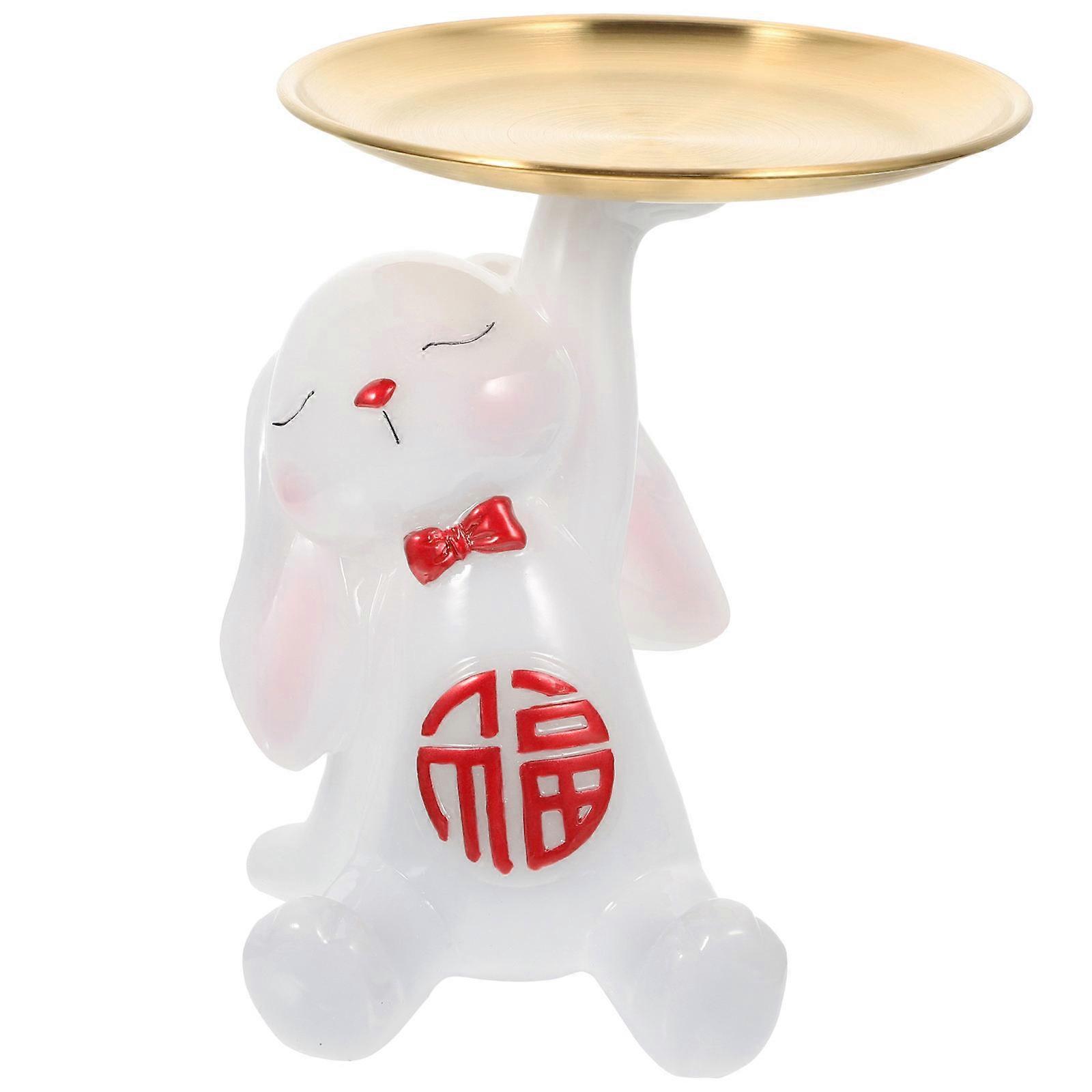 Tray For Keys Bunny Figurine Tray Living Room Jewelry Tray Red Ceramic Phone Stand 1Set