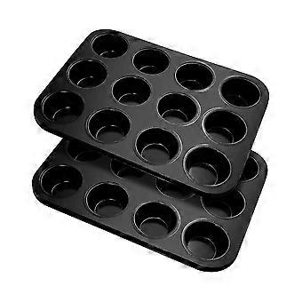 Muffin Tray, Pack Of 2 Carbon Steel Muffin Tray For 12 Muffins, Non-stick Coated Muffin Baking Moul