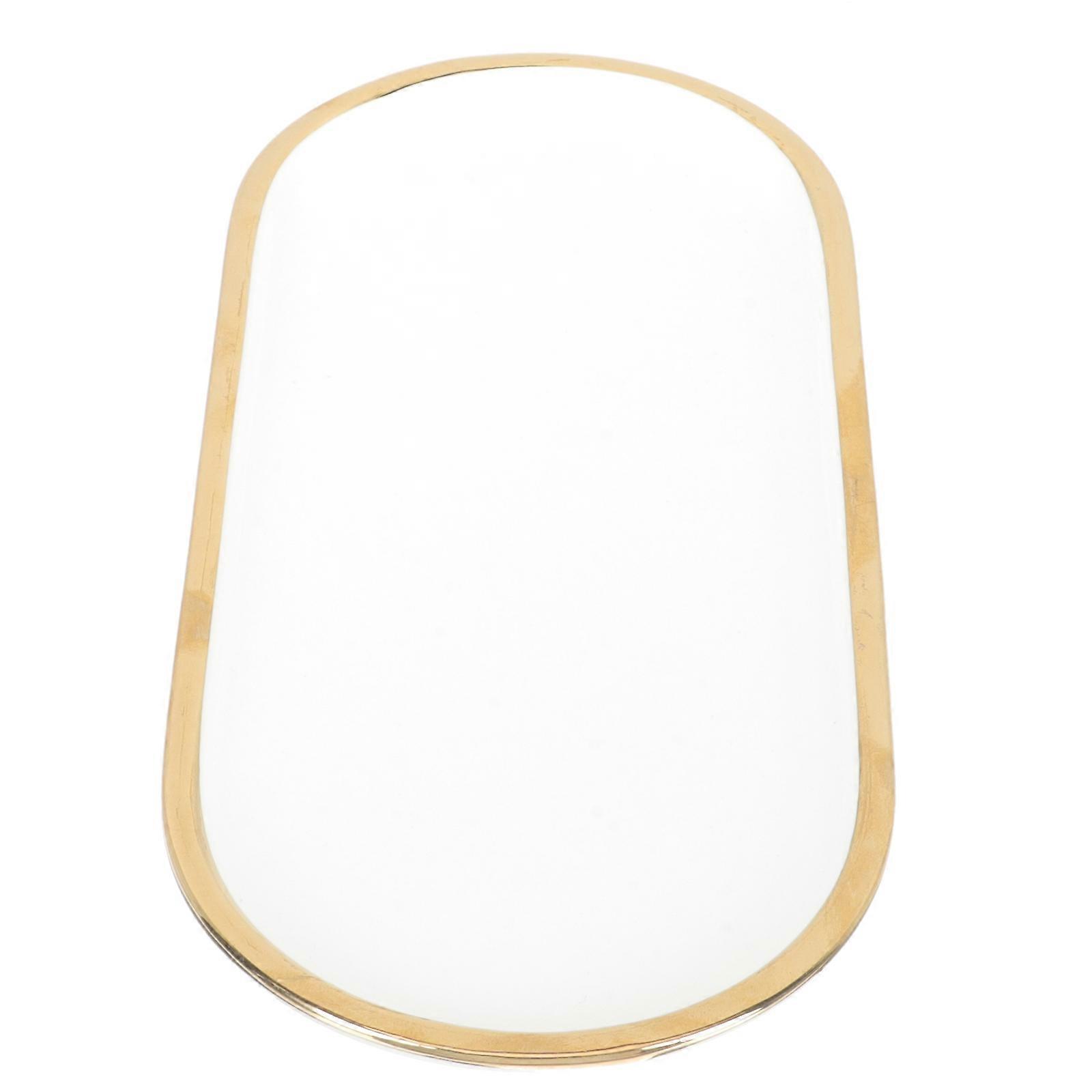 Elegant Oval Ceramic Jewelry Tray with Gold Rim for Organizing Rings and Earrings – Home Decor, Bathroom, Dressing Table Storage