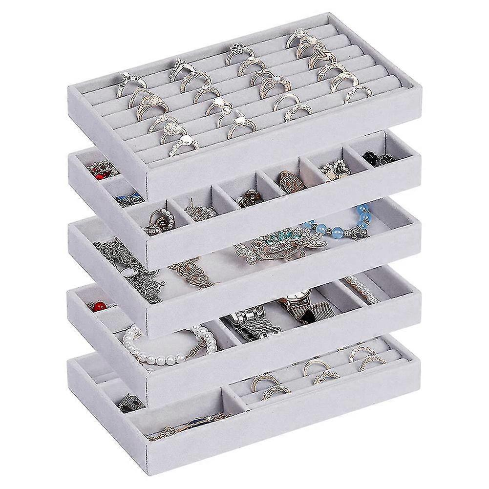 Jewelry Organizer Tray, 5 Pcs Stackable Velvet Jewelry Organizer for Drawer, Jewelry Storage Displa