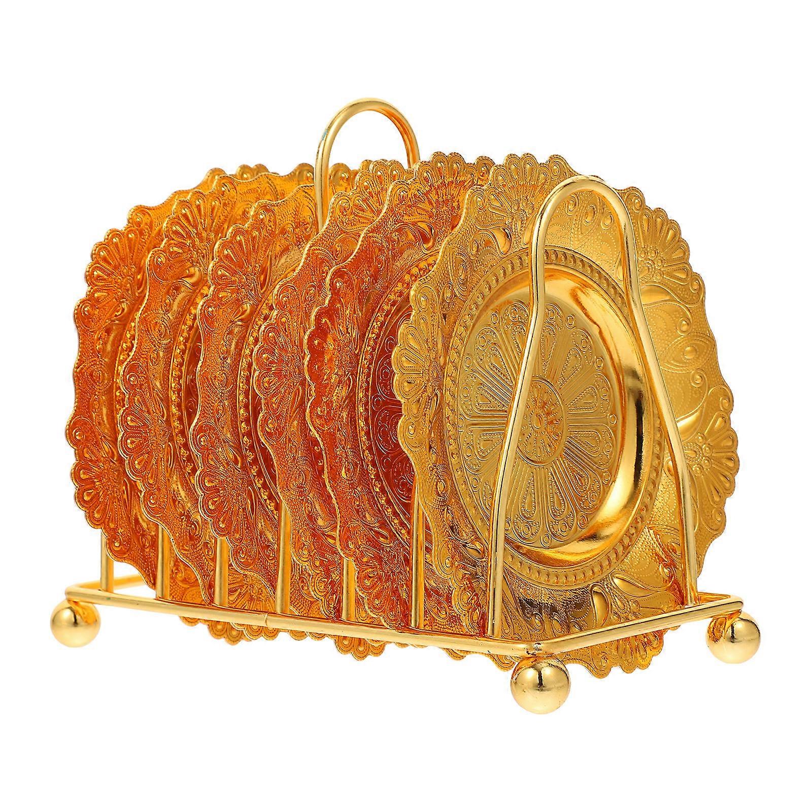 Elegant Gold Snack Tray with Storage Rack – Decorative Serving Plates and Coasters for Kitchen Organization, Parties, and Housewarming Gifts