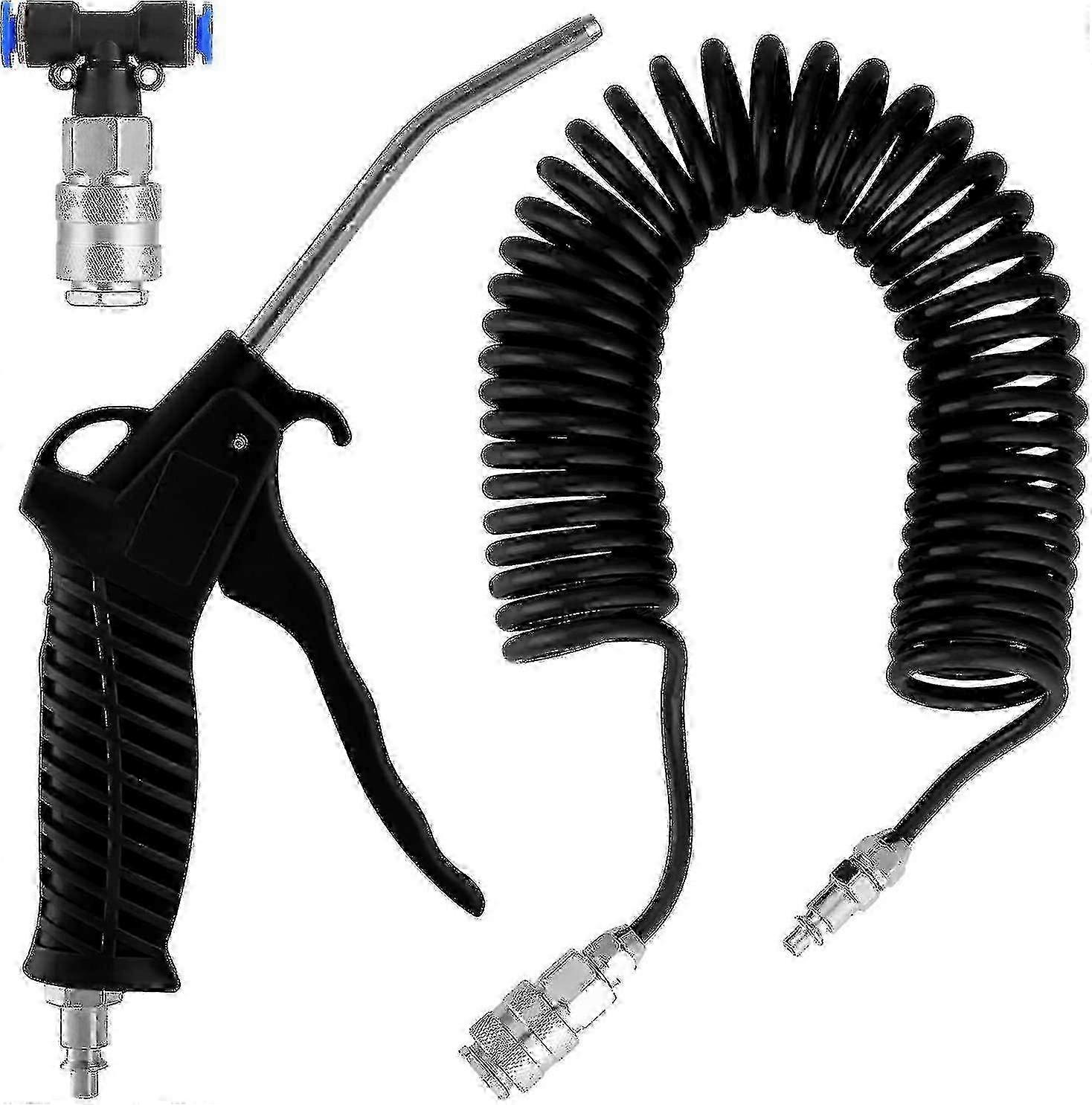 Blow Gun Truck Pneumatic Blow Gun With 5 Meter Coil Hose Air Gun Cleaning Kit For Truck With T-connector, Black