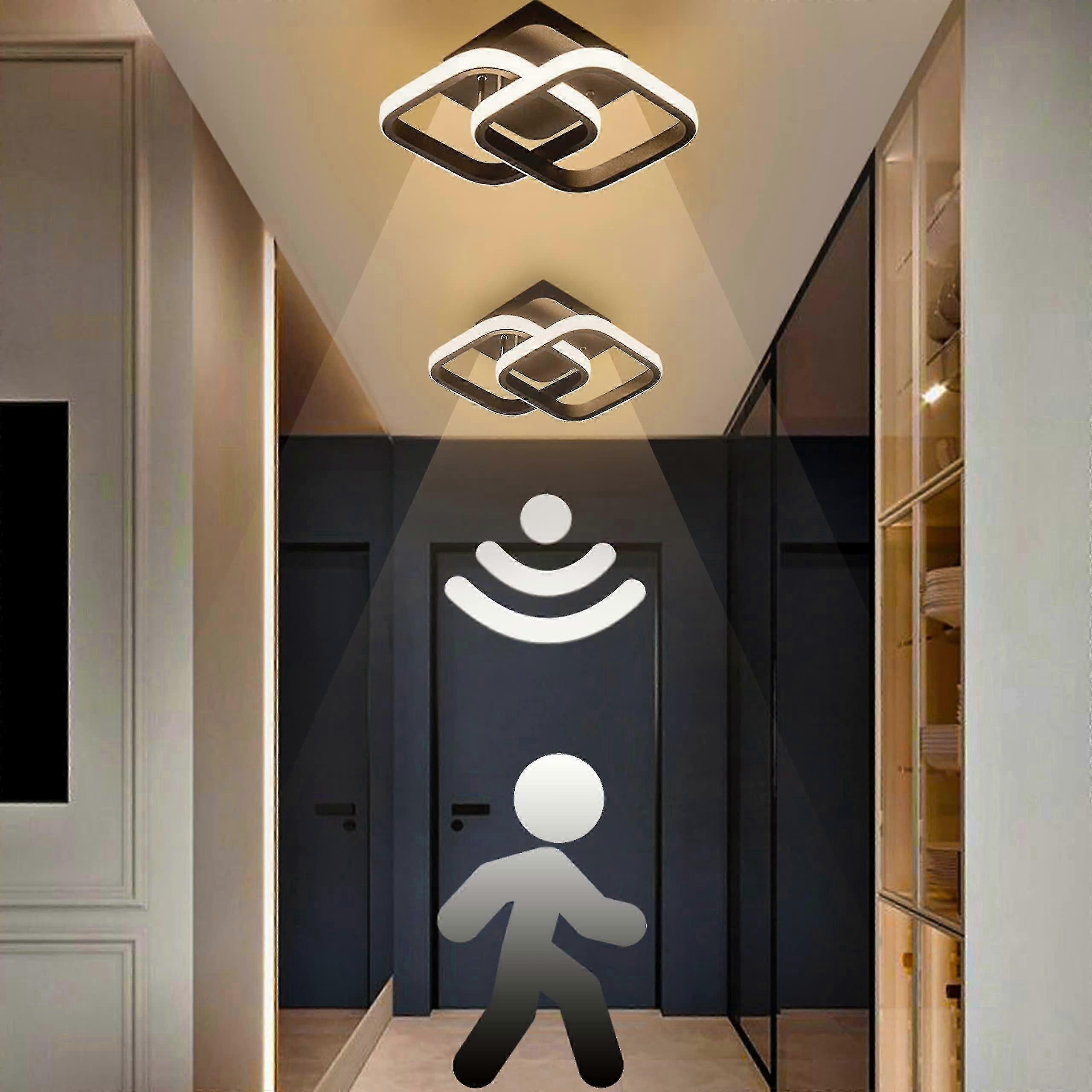 LED ceiling light with motion detector inside, 22W warm white ceiling lamp, 24 * 20 * 9CM sensor lamp, suitable for hallways, garages, bathrooms, 1PC