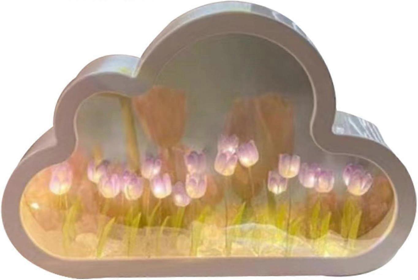 Tulip Night Light, LED Cloud Shaped Tulip Mirror Night Light, 2 in 1 Mirror/Night Light, Portable Bedside Lamp for Bedroom, Mirror Decoration for Home