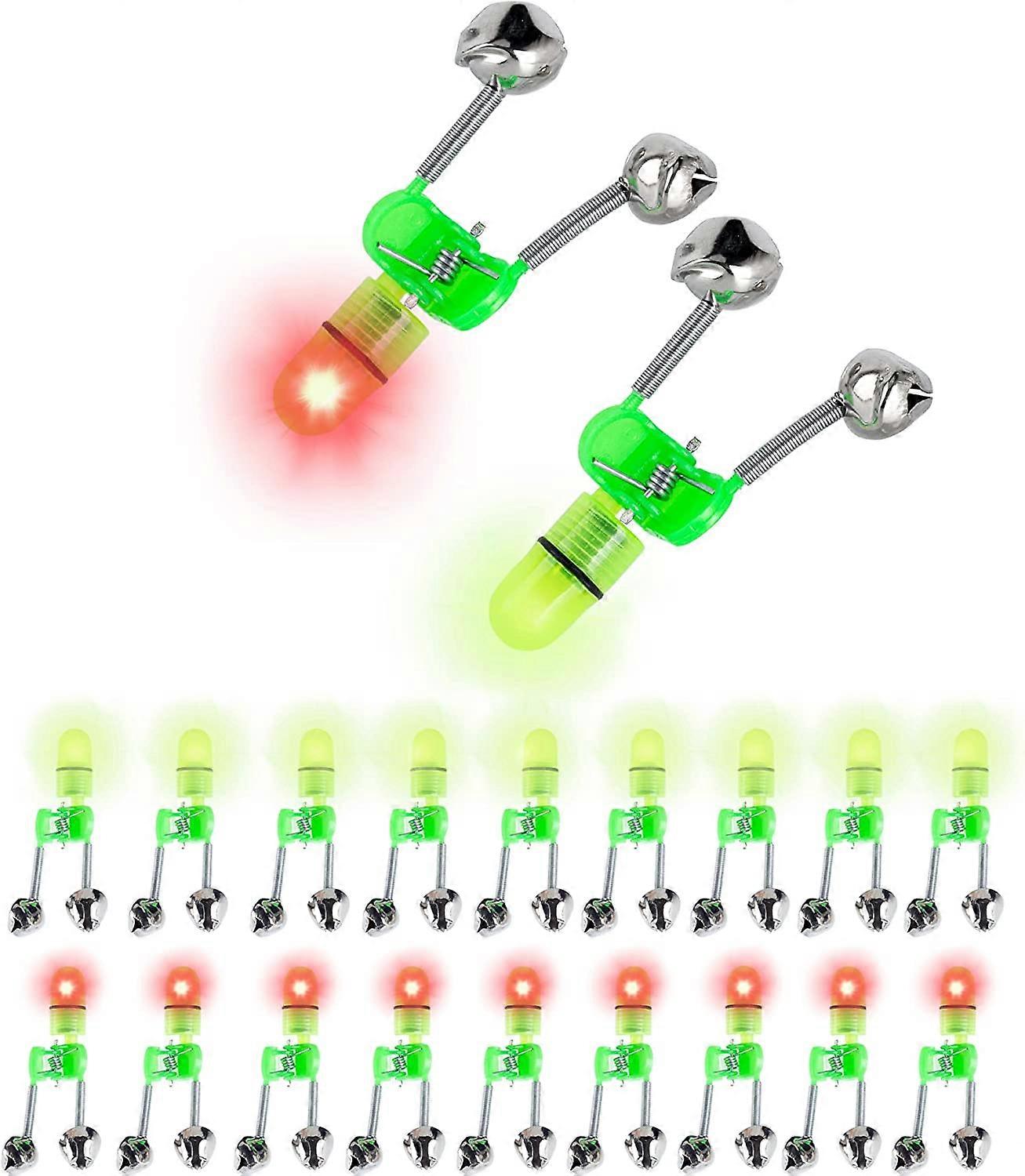 Night fishing rod bite alarm light with double bell ring fishing rod bite alarm light (green) (10pcs)